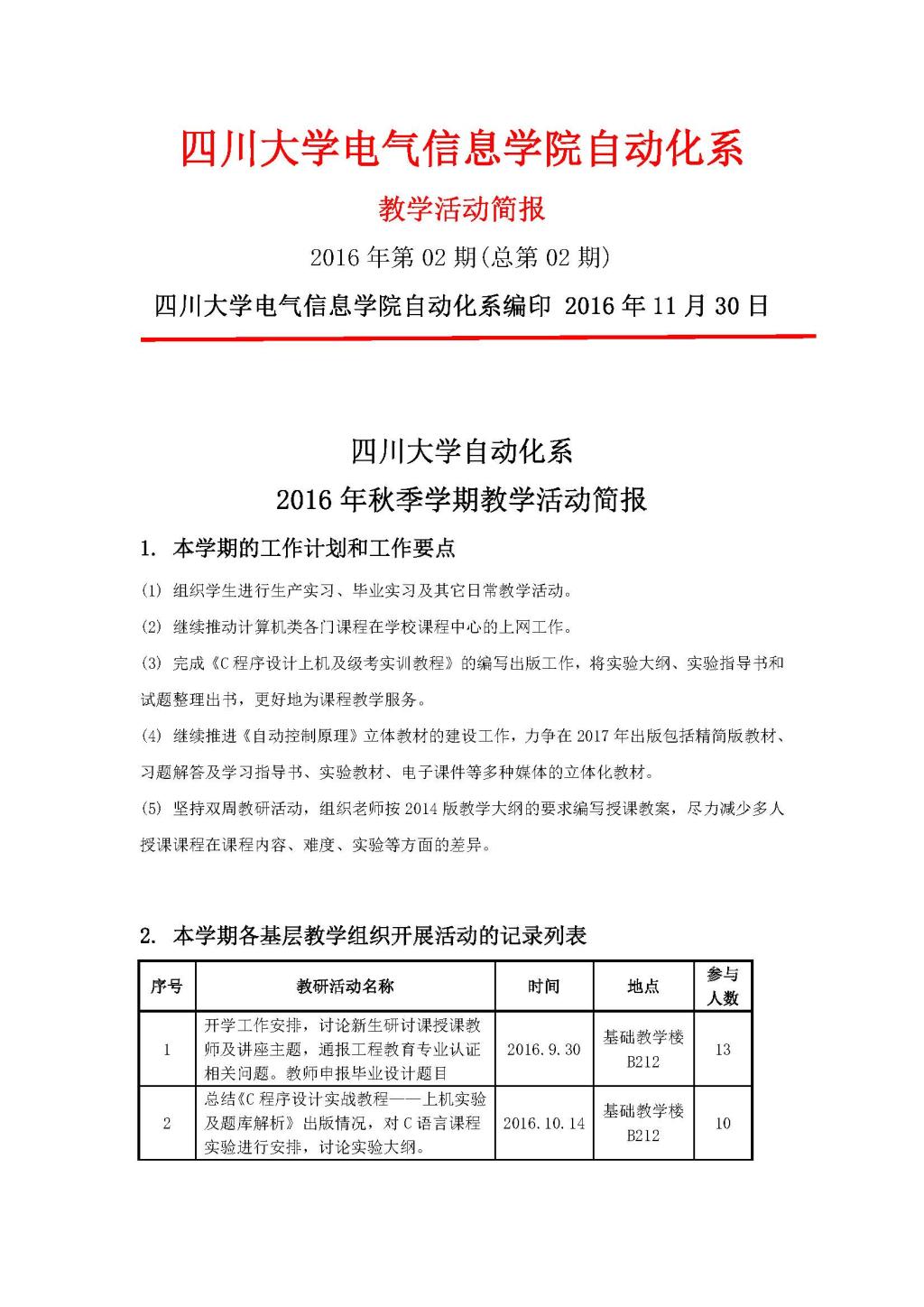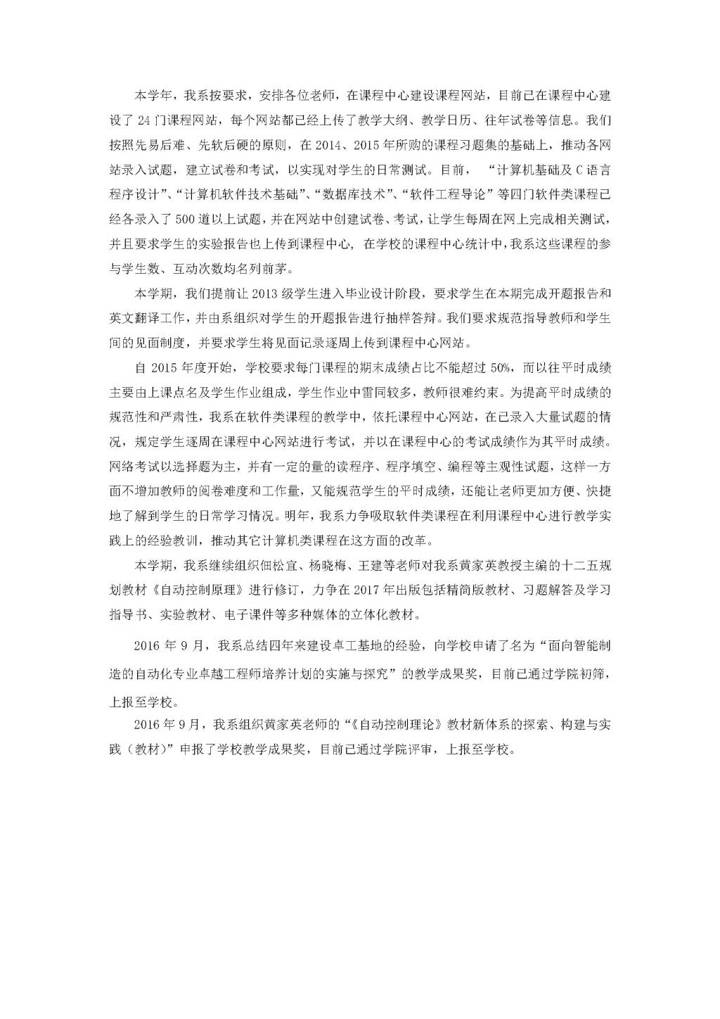 自动化2016年(秋季学期)教学活动简报