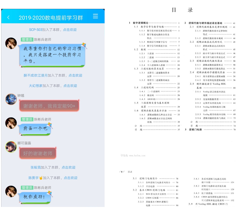 此外,为解决同学们在开课前的疑问,方便与同学们有效进行沟通交流,陈彬兵老师提前于腾讯平台上创建了“2019-2020数电提前学习群”,同学们积极响应,纷纷加群讨论,目前已有二百五十余人加群。陈老师积极回答同学们的各种疑问,打消有些同学的学习顾虑,大家都很期待新课程的到来。