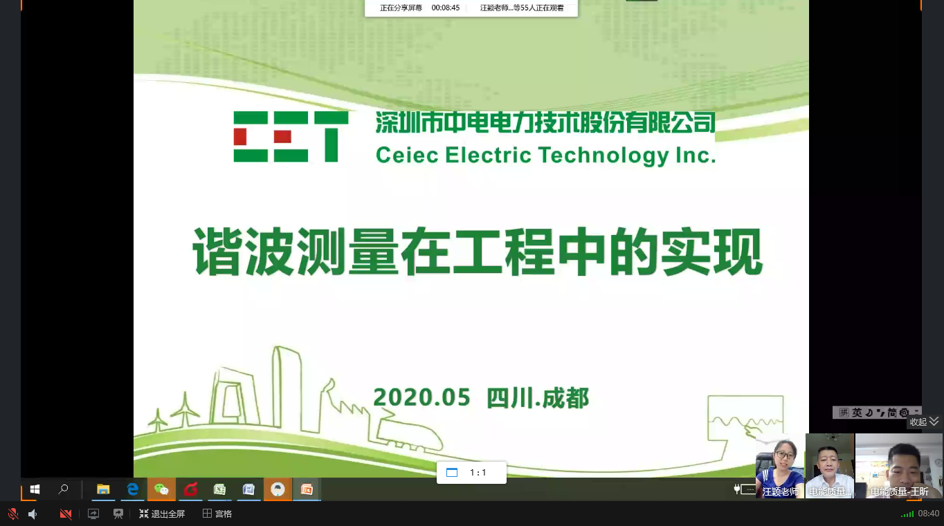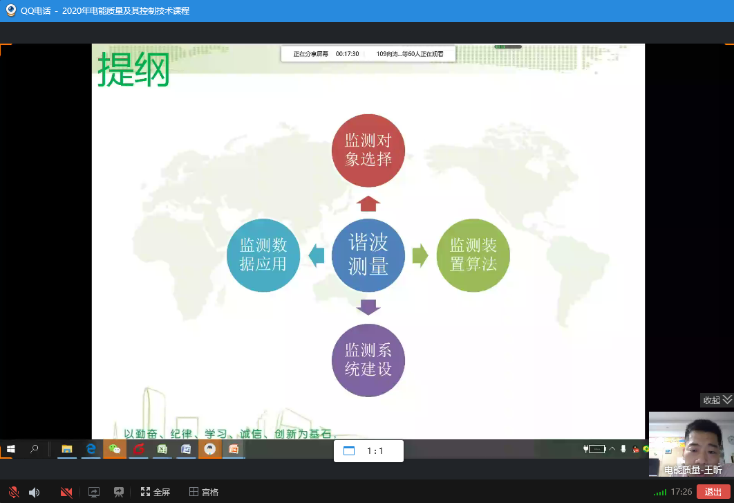 为增强学生解决实际复杂工程问题的能力,任课老师特别邀请深圳市中电电力技术股份有限公司高级工程师王昕为同学们开展“谐波测量在工程中的实现”讲座。王昕老师长期从事电能质量监测相关的应用技术研究、标准编制、产品需求分析与设计、以及应用技术推广工作,多次获得省部级、电网公司科技进步奖,发表论文50余篇;此外,还担任全国电压电流等级与频率标委会委员,电力行业电能质量与柔性输电标委会委员,中国电源学会城市供电分委会电能质量与电磁兼容学组委员。根据抗击新冠疫情期间的授课方案,2020年5月29日晚7点,讲座在QQ群课堂在线进行。