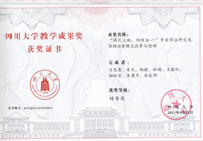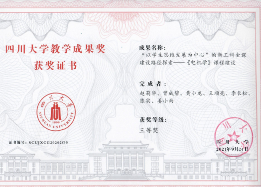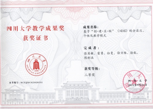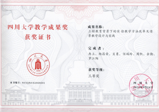 共获得七项教学成果奖,其中特等奖1项,一等奖2项,二等奖2项,三等奖2项。