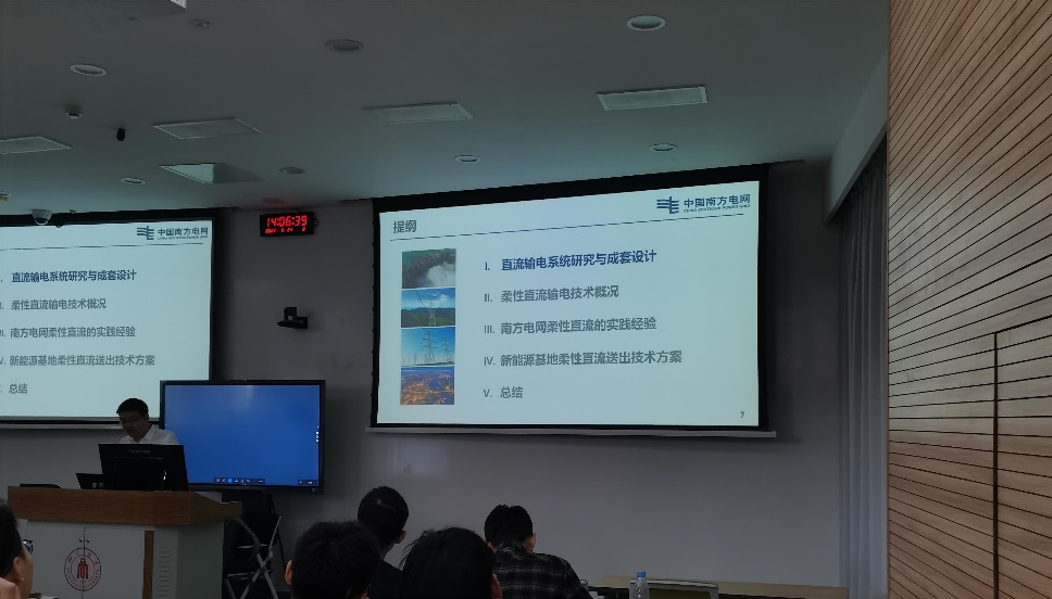 邀请南方电网公司高级技术专家,南网科研院直流所副所长,正高级工程师赵晓斌,在望江校区基础教学楼C座102开展了题为“南方电网柔性直流的实践经验与发展”的学术讲座。讲座由马俊鹏副教授主持,2023级电气工程专业研究生参加。