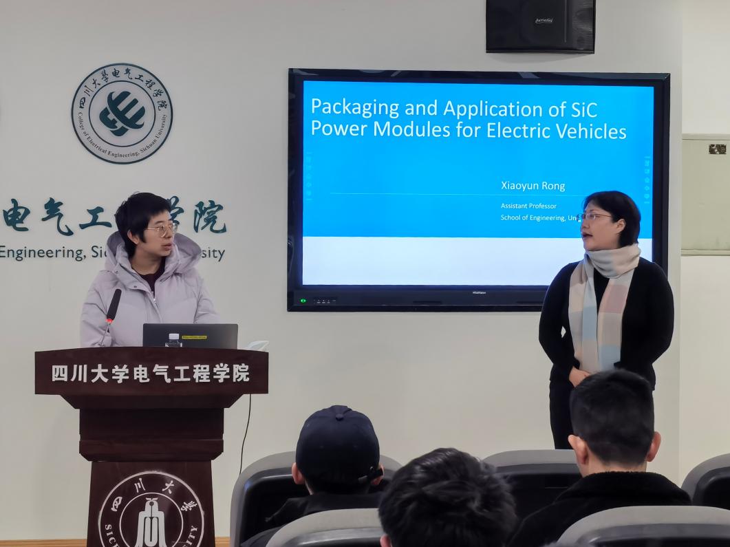 王渝红教授邀请英国华威大学助理教授荣小云博士开展了题为“电动汽车硅功率模块的封装与应用”的讲座。此次讲座吸引了众多硕士生及博士生,旨在通过工程实践中的创新封装策略,深化学生对电力电子技术的理解。讲座的顺利开展为吃瓜网站2024年春季学期《电气工程前沿》课程系列讲座活动拉开了序幕。