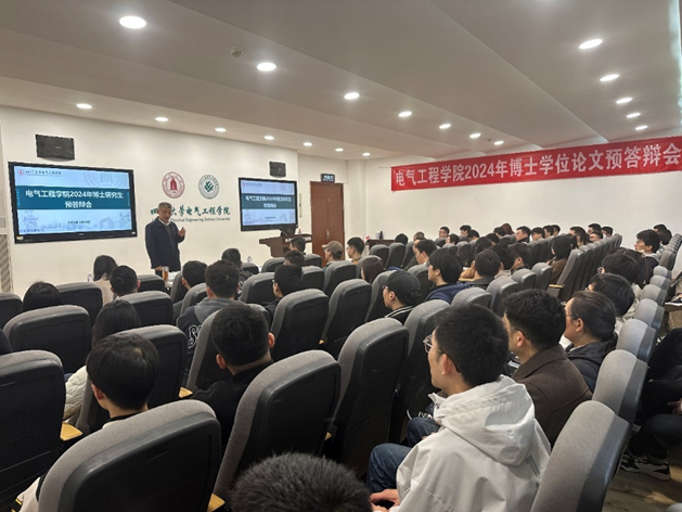在基础教学楼B206会议室举办了2024年春季博士研究生学位论文预答辩会。肖先勇教授、贾申利教授、刘天琪教授组成预答辩委员会,全院近百名博士研究生旁听。