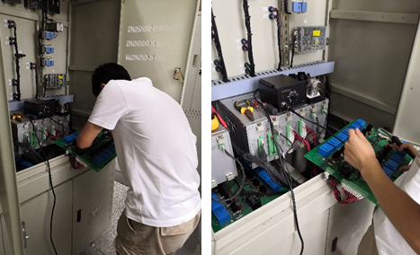 故障排查结束后,沈靖和廖逸犇同学对设备进行通电调试,确保了排查过程无遗漏、设备能够正常工作,圆满完成了故障排查与检修工作。
