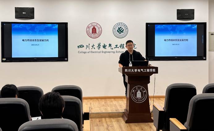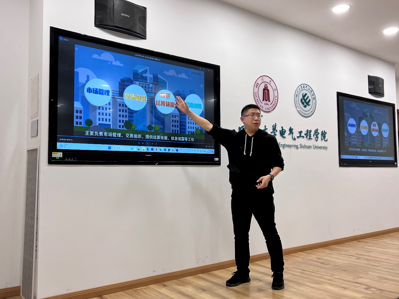 讲座上,陈主任通过视频向同学们深入浅出地介绍了电力市场交易的基本概念和电力交易的基本形式,并结合四川当前的电力供需形势,介绍了四川省电力市场化交易品种。随后,陈主任通过售电公司参与双边协商收购电量的案例分析,带领同学们从售电公司的角度更好地了解了电力市场运营的基本形式,并从中体会到了电力市场交易中存在的风险与机遇。