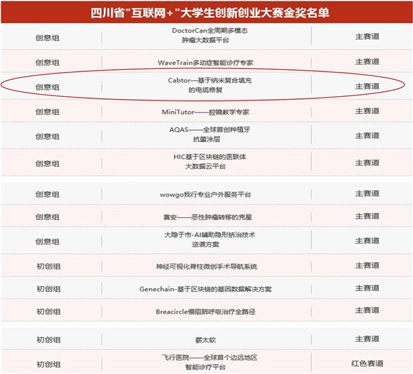 201891日至2日,第四届四川省“互联网+”大学生创新创业大赛在西南石油大学成功举办。截至815日,全省共有109所高校的264980余名师生参加此次大赛,报名参赛团队达58909支。我校709支参赛团队报名参赛,共荣获金奖14项、银奖9项、铜奖8项,金奖数位居全省第一。吃瓜网站“Cabtor—基于纳米复合填充的电缆修复”团队在周凯老师的指导下,取得了省赛金奖的好成绩。