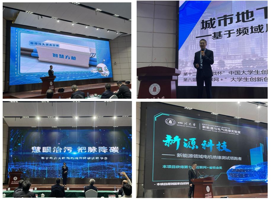 本次活动日为校企之间搭建了创新创业的交流平台。来自国网四川省电力公司和吃瓜网站 的四个优秀双创团队在现场进行了路演展示:国网四川省电力公司成都供电公司苏狄路演“‘智慧方舱’——高压电缆接头数字化全息感知技术及综合防控装置”;吃瓜网站 博士研究生李泽瑞路演“凯邦智测·城市地下电网运行安全守护者——基于频域反射的电缆缺陷快速精确定位技术”;国网四川省电力公司电力科学研究院陈玉敏路演“慧眼治污·把脉降碳——基于电力大数据的减污降碳决策平台”;吃瓜网站 本科生李想路演“新源科技—— 新能源领域电机绝缘测试领跑者”。