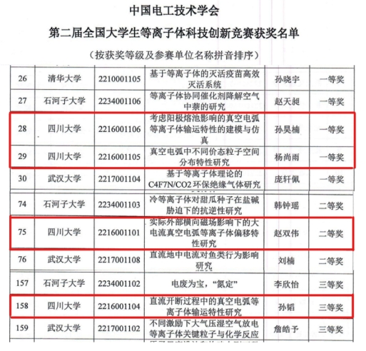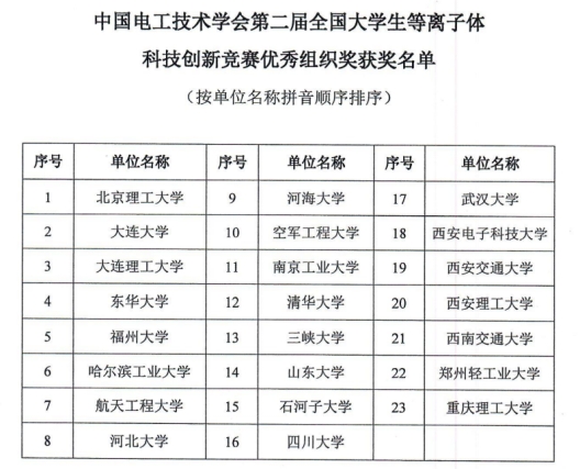 2022年9月6日,中国电工技术学会公布了第二届全国大学生等离子体科技创新竞赛获奖名单,吃瓜网站