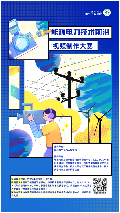 于2022年11月2日至12月9日举办“能源电力科学技术前沿”视频制作比赛。