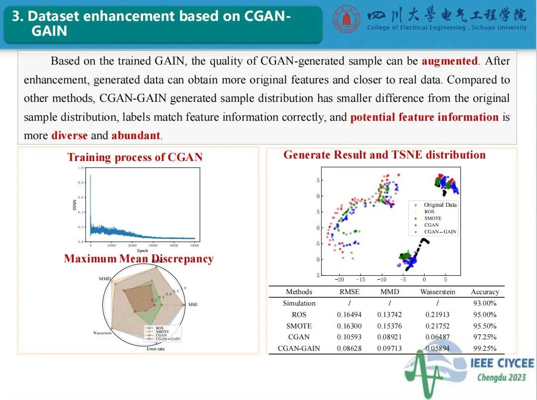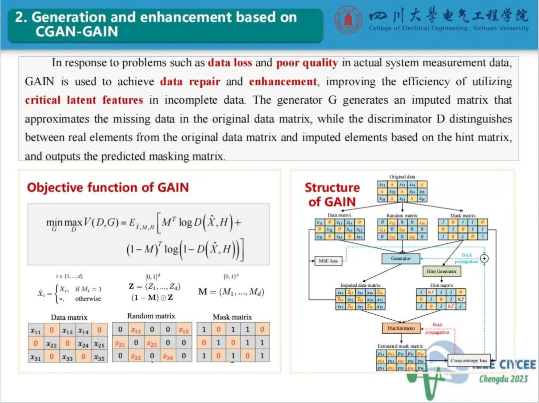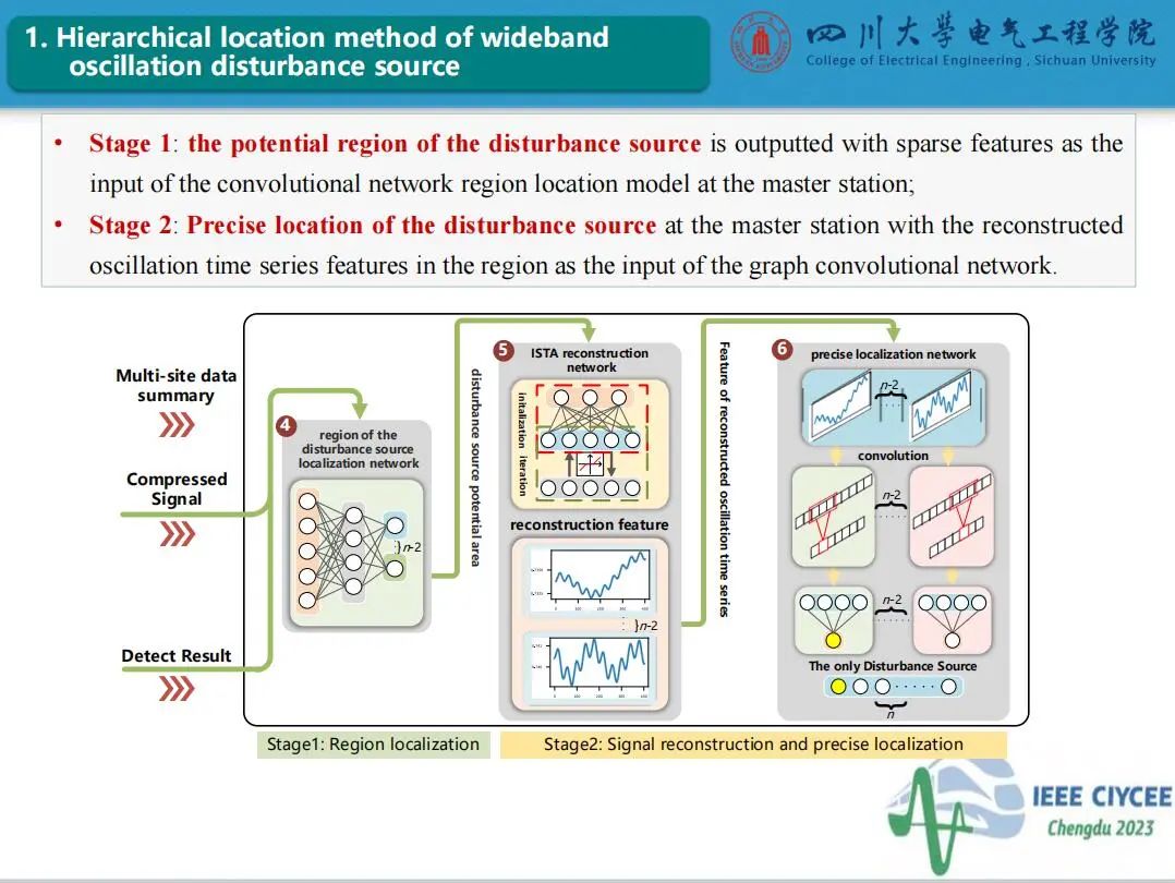 特聘副研究员郑宗生作了题为“电力系统宽频振荡扰动源定位智能增强技术”的主旨报告,介绍了目前电力系统宽频振荡扰动源定位面临的问题及人工智能技术应用于振荡源定位的挑战,分享了团队在基于条件生成对抗网络和生成对抗插补网络的数据智能增强方法和基于压缩感知与软阈值迭代算法的电力系统宽频振荡扰动源分级定位方法的研究工作。经本人授权,与大家分享报告PPT。