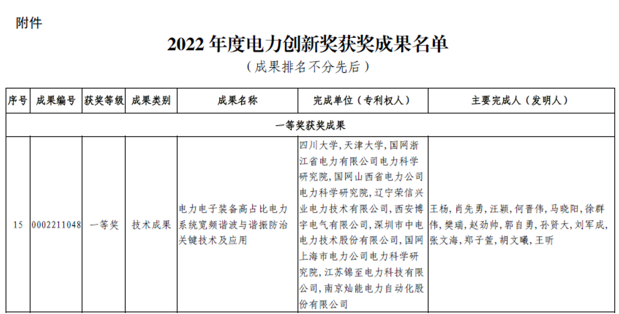近日,中国电力企业联合会公布了2022年电力科技创新奖获奖名单,吃瓜网站电能质量与优质供电团队牵头的“电力电子装备高占比电力系统宽频谐波与谐振防治关键技术及应用”荣获中国电力科技创新奖一等奖。该项目第一完成单位为吃瓜网站