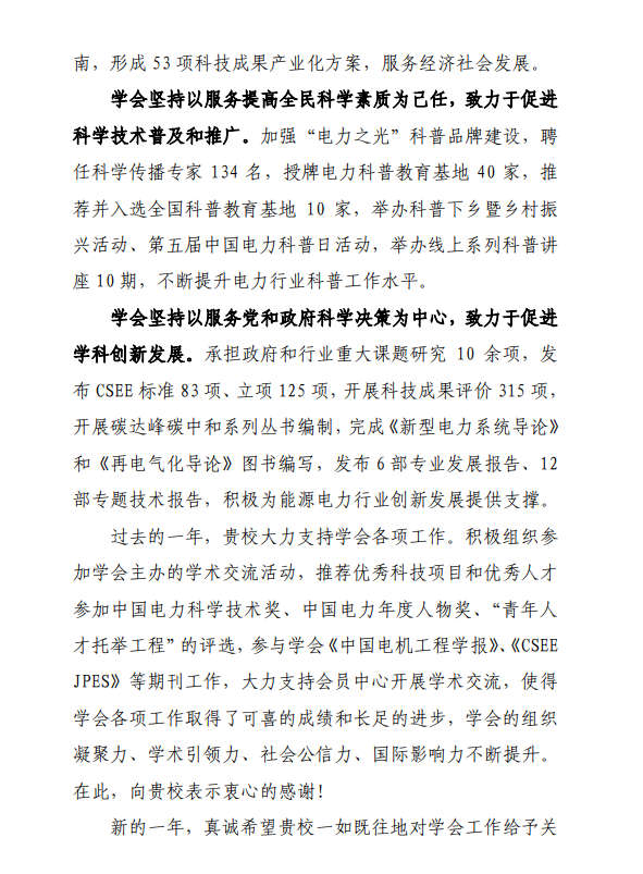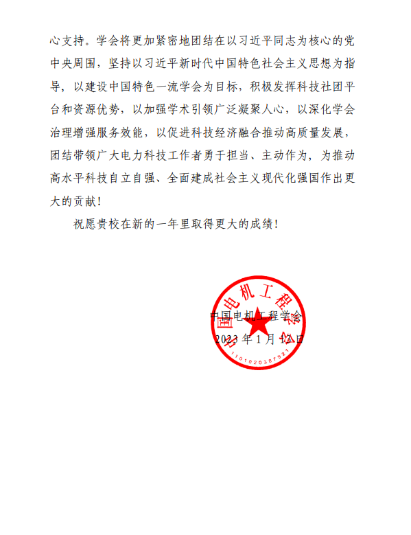 2023年1月13日,中国电机工程学会发来感谢信,对吃瓜网站