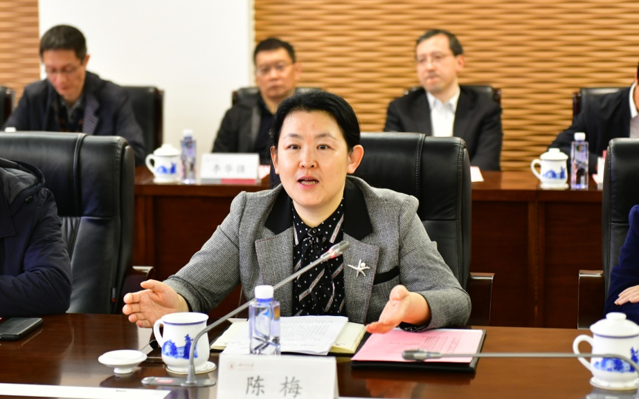 侯太平副校长代表学校对陈梅主任一行表示热烈欢迎,他表示,一直以来,学校与国家电网公司有着良好的合作,双方在新型电力系统、能源互联网、“碳达峰,碳中和”等领域开展了深入研究,在科技创新、成果转化、人才培育、平台建设等领域不断深化合作。期望双方持续巩固良好合作基础,进一步发挥各自优势,在技术协同攻关、人才联合培养等方面形成更密切坚实的合作。