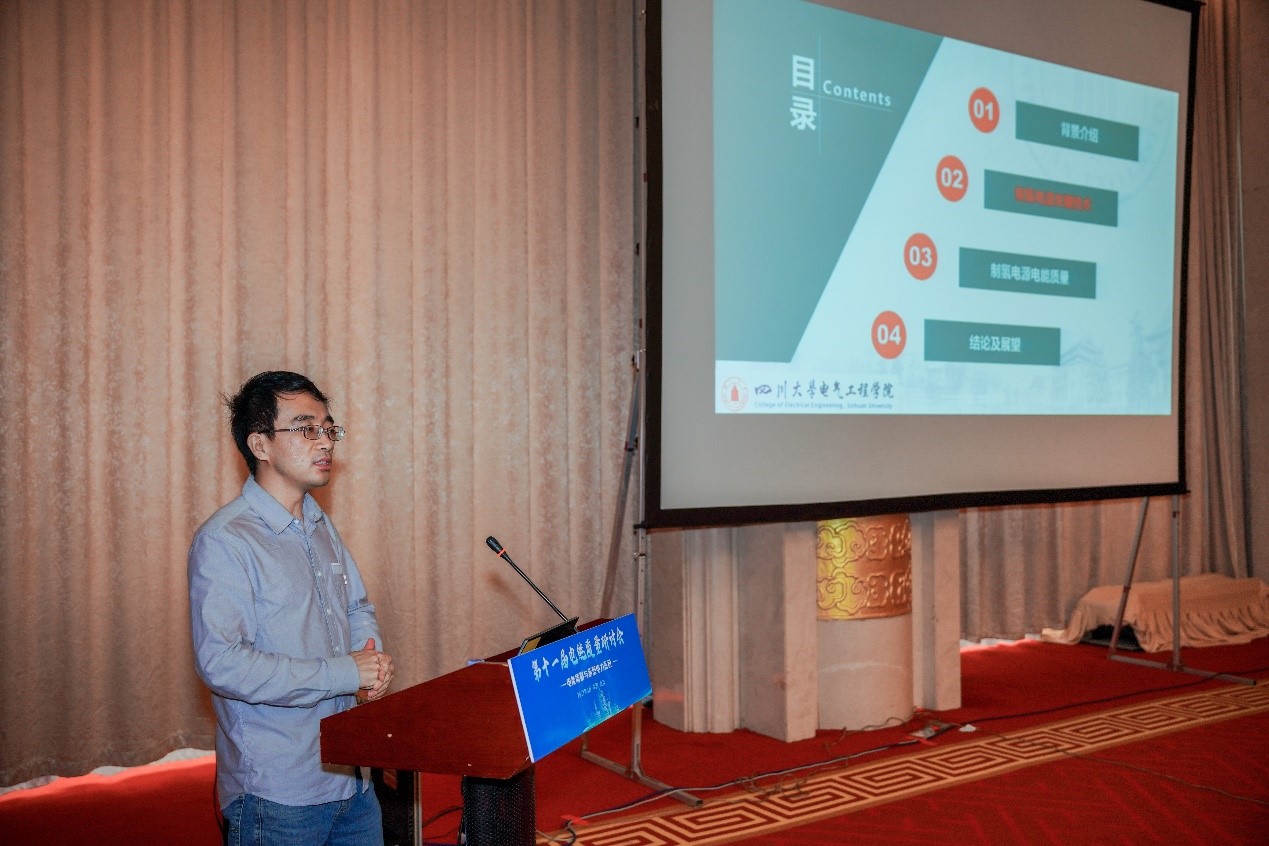 院长肖先勇教授携汪颖教授、王杨研究员、孟鑫副研究员、胡文曦老师和陈韵竹老师参加了此次研讨会,并作大会报告,就新型电力系统电力扰动及其数据应用分享了前沿观点。