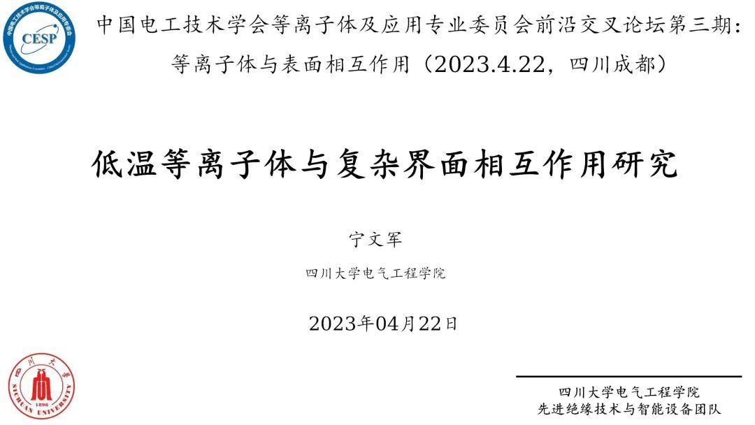 副研究员宁文军作了题为“低温等离子体与复杂界面相互作用研究”的报告,经本人授权,与大家分享。