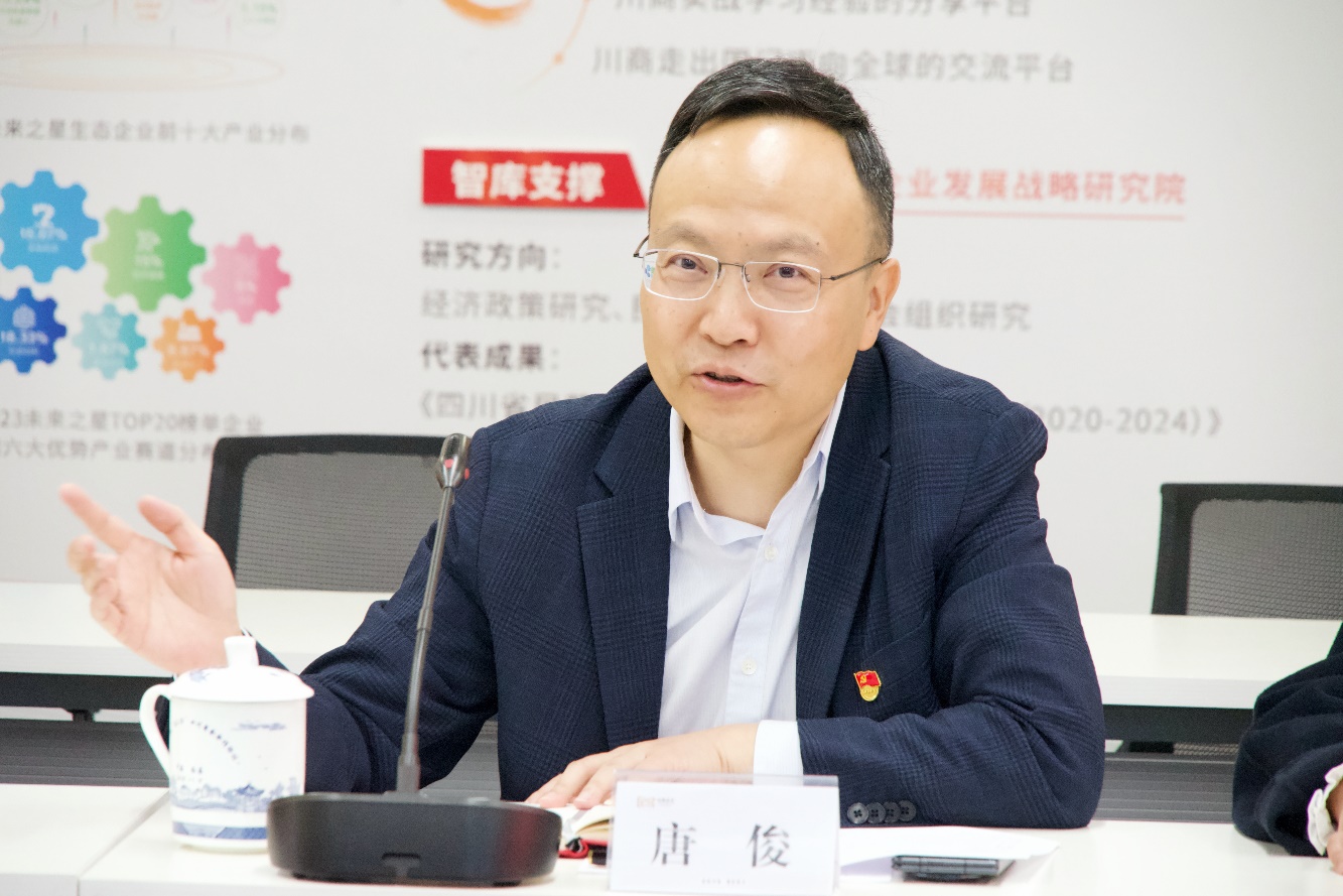 唐俊书记对吃瓜网站 一行来访表示欢迎,他简要介绍了川商总会组织架构、业务工作、党建联建等方面情况,分享了川商总会以党建带会建、促发展,通过“党旗下的川商”党建引领,构建“党政、产业、机构、平台”四大资源体系,打造学习交流、智库支持、品牌塑造、投资合作、企业维权等多维度价值服务载体,赋能服务川商企业谋发展的经验和成效。希望双方进一步加强合作,搭建党建共建平台,取得更多成效。