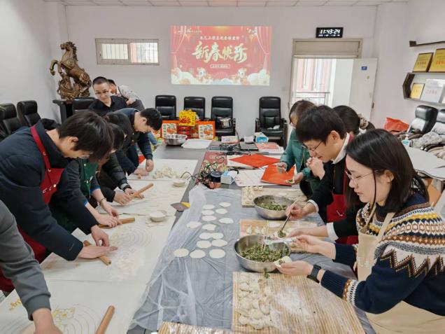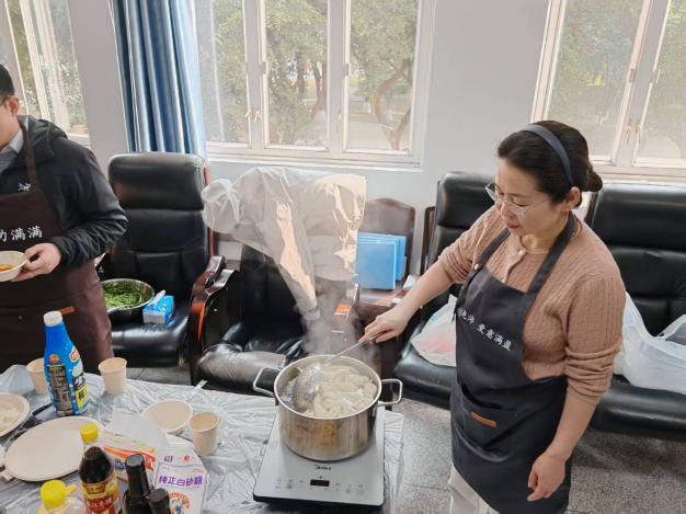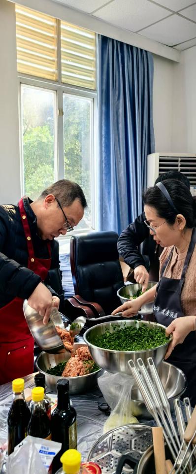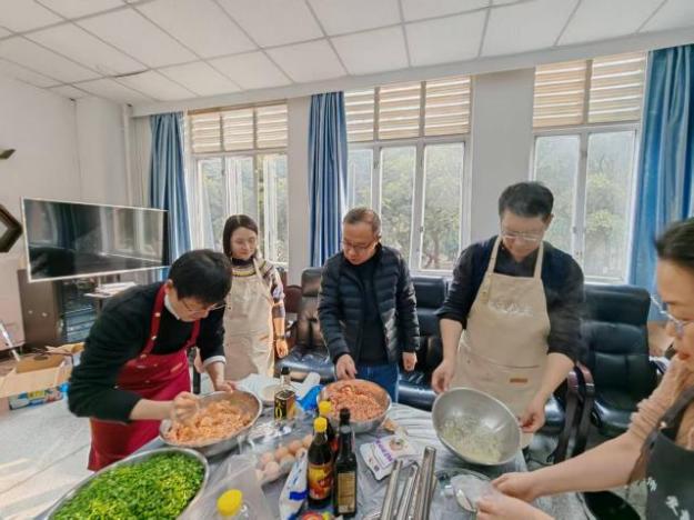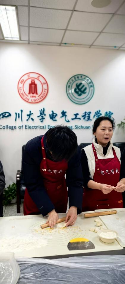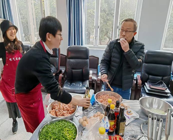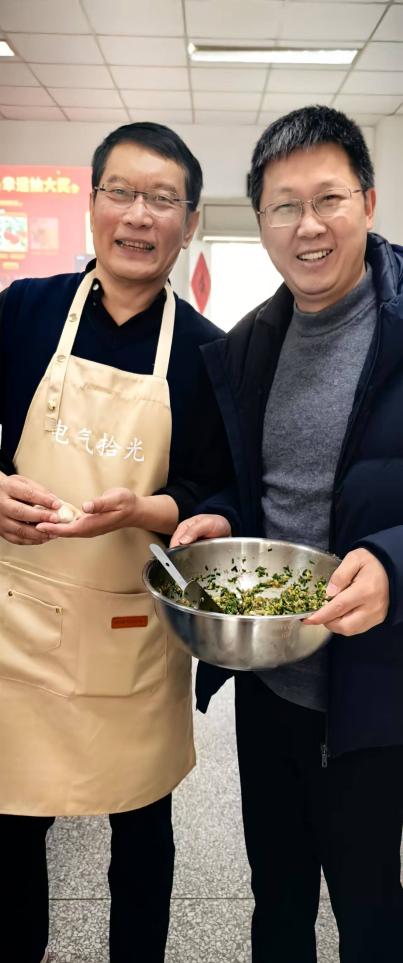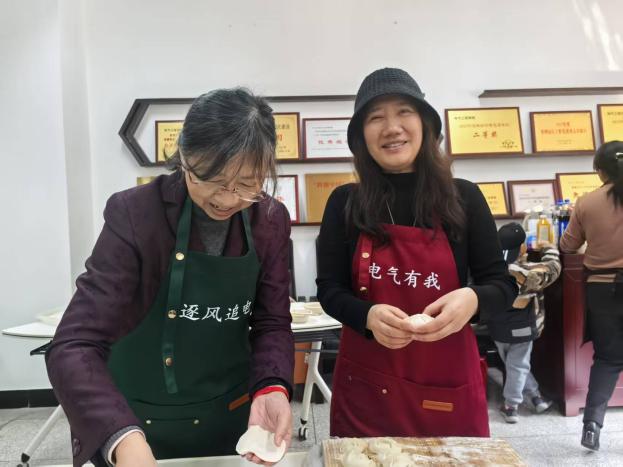 迎新春活动在一片欢声笑语中拉开帷幕。和面、擀皮、拌馅、包饺子、写春联、贴福字、煮汤圆……大家忙得不亦乐乎,人人脸上充满笑容,现场氛围热火朝天。在电气工程系党支部和工会的支持下,今年的活动还添置了“新装备”,一条条电气定制款围裙,一个个解放双手的切菜机、和面机,让老师们从包饺子“小白”变成了“行家”。大家分工协作,欢声笑语,拉家常,话友情,彼此分享一年来的收获和喜悦。
