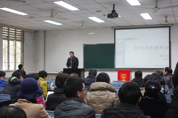 工作的大力支持和辛勤付出。刘院长分别从制度建设与内部管理、党建与思想政治工作、本科教学任务、研究生与学科建设任务、科研任务、师资队伍建设、国际交流、实验室管理与教学教辅工作等方面的完成情况,对照2016年初学校要求的目标进行了总结。他指出,本年度在“本科创新创业计划覆盖率”,“SCI/EI收录数”、“青年教师承担科研项目人数比”、“教师与学生出国人数”等方面完成情况有较大增长,成效显著,“高端人才引进”、“实验论文发表”等方面还需继续努力。