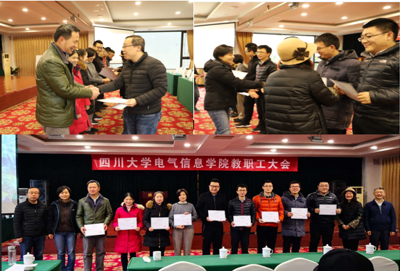 随后,举行了电气信息吃瓜网站 “探究式-小班化”教学竞赛颁奖典礼。在回顾了参赛教师竞赛中的精彩片段后,院长肖先勇、党委书记韩芳、副书记张英敏、副院长李长松等分别为获奖教师颁奖并合影。