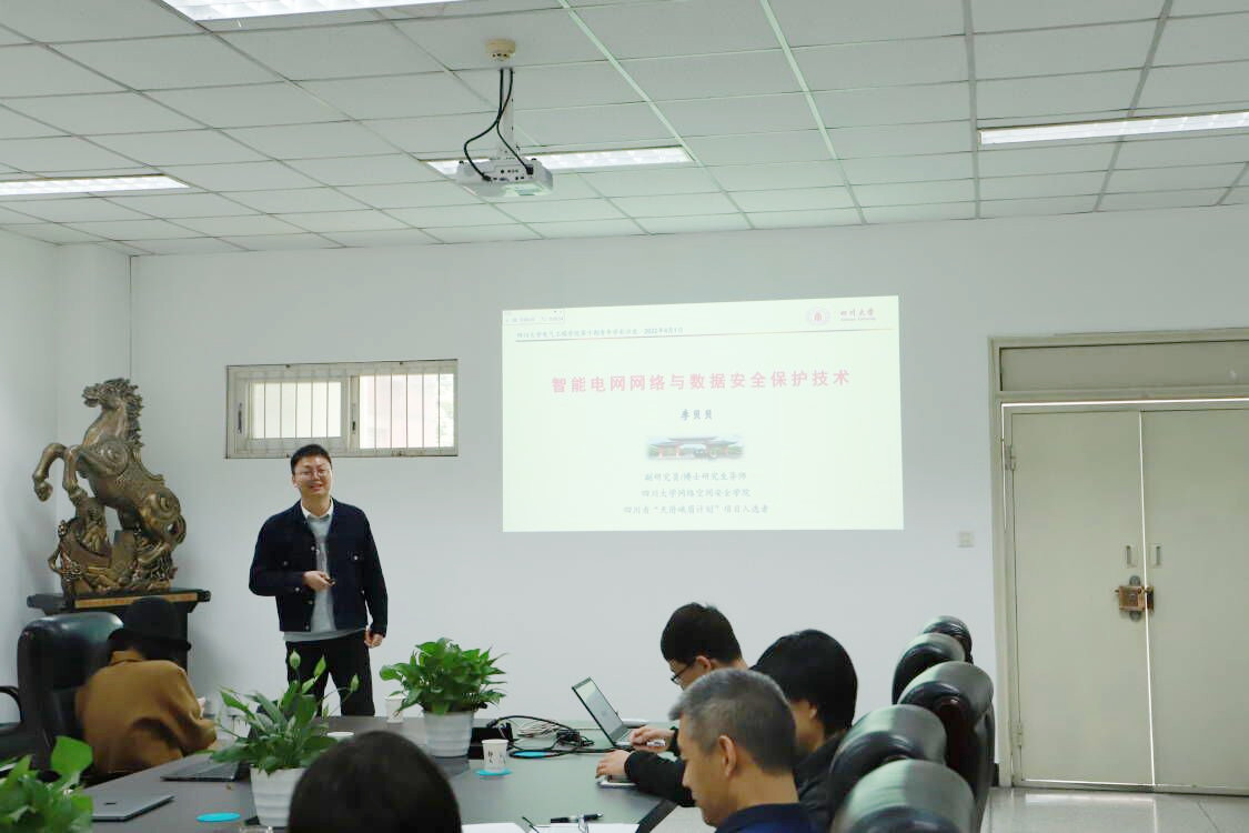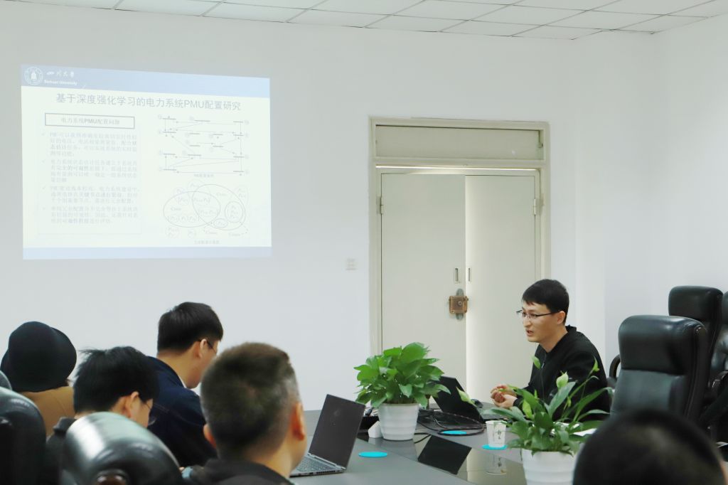的4位年轻教师从“人工智能”与“新型电力系统”两个学科研究重点领域,分别围绕《区域电网输电通道的人工智能调控方法研究》、《基于深度强化学习的电力系统PMU配置研究》、《智能电网网络与数据安全保护技术》和《面向知识支撑系统与交互系统的自然语言处理》四个专题进行了学术交流。