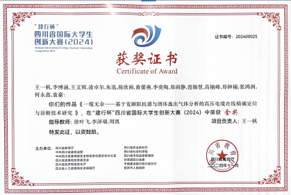 [8] 《输配电电缆绝缘老化机理、诊断和修复的研究及应用》, 四川省科学技术进步三等奖, 1/7, 2020.