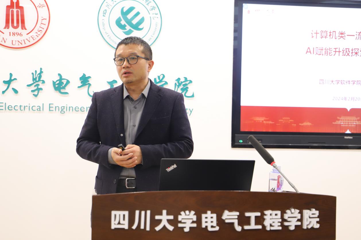 )副院长严斌宇受邀作了题为“计算机类一流课程的AI赋能升级探索与实践”的报告。他围绕人工智能赋能高等教育教学背景、先行者的探索进行了详细讲解,并重点分享了其在一流课程建设与AI赋能升级的实践经验和对未来AI技术进一步应用于一流课程建设的相关思考。