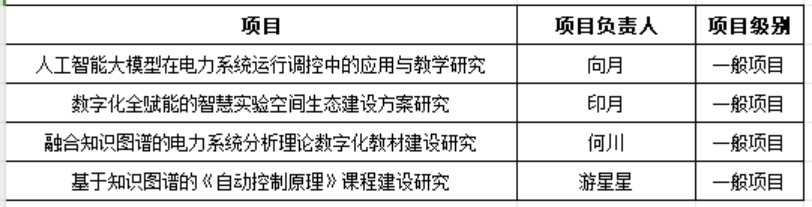 (1)汪颖老师的《能源电力系统电力扰动分析与控制》获2023 年省级高等学校创新性实验立项。