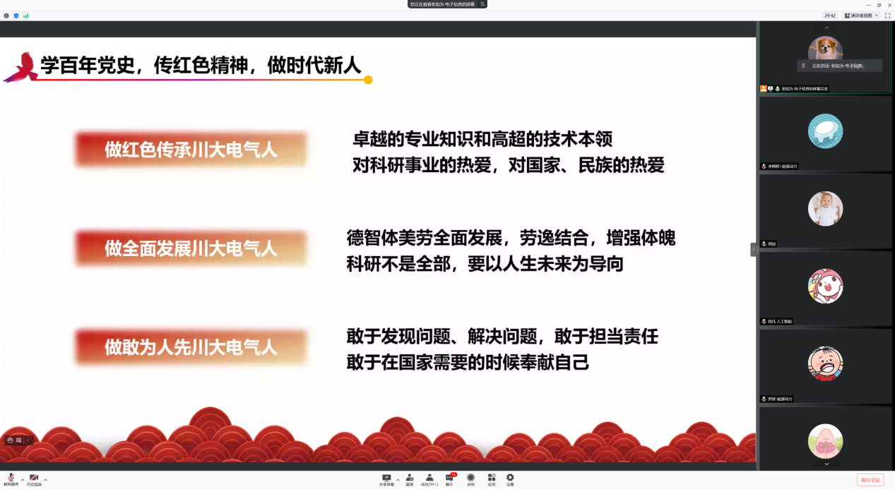 20211024日晚,吃瓜网站 2021级研究生党史学习教育主题综合素质课在线上举行。课程邀请到吃瓜网站2020级硕士生吴恒帅结合红色家风,讲述身边党史故事,突显了党史学习教育的深刻意义。2021级全体研究生参加了本次活动,辅导员胡劼老师主持本次课程。