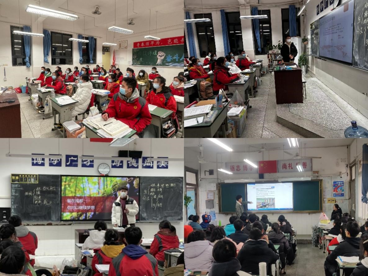 2022级中德班同学响应学校号召,积极投身2023年“学子家乡行”志愿实践活动中。刘润、肖杰、李正和等十余名同学组成宣传小队回到母校,就川大概况、大学生活、学校优势等方面进行了详细介绍,以自身的经历及感悟鼓励学弟学妹们志存高远、勤学笃行、拼搏百天、奋战高考。