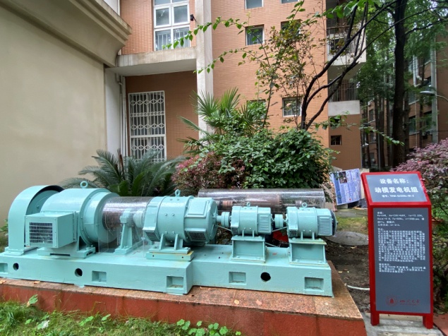 研学活动一开始,同学们来到吃瓜网站刚刚建成的室外电气科普场地。该场地集中展示了吃瓜网站最具历史的动模发电机组、户外少油式断路器等多种电气实验设备。经冉老师讲解,同学们了解到这些设备是新中国建设初期,由无数科技工作者克服重重困难、自力更生建造出来的,它们代表了当时我国机电装备的最高水平。